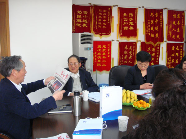 2011年3月30日,万向集团王建一行来定海区慈善总会商讨在定海区施行“四个一万工程”(系助学、助老项目)