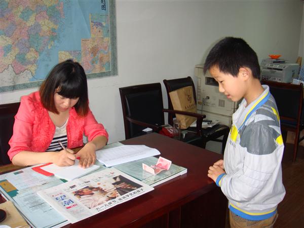2012年6月1日,海山小学二年级学生薛早成来定海区慈善总会捐款100元。