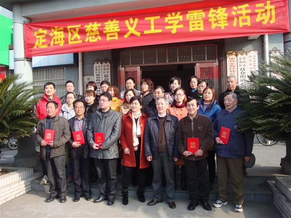 2013年3月5日,定海区慈善总会义工分会举办学雷锋活动,图为受表彰的25名优秀慈善义工