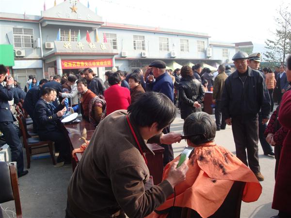 图为义工分会和城东、解放等义工服务站的慈善知识咨询、捐赠物品义卖、义诊、修理电器、理发、盲人推拿等服务项目现场