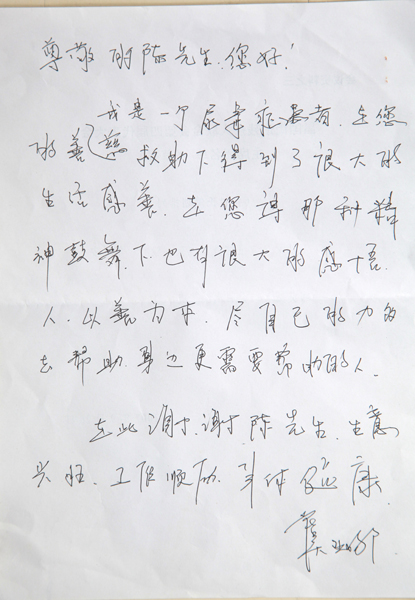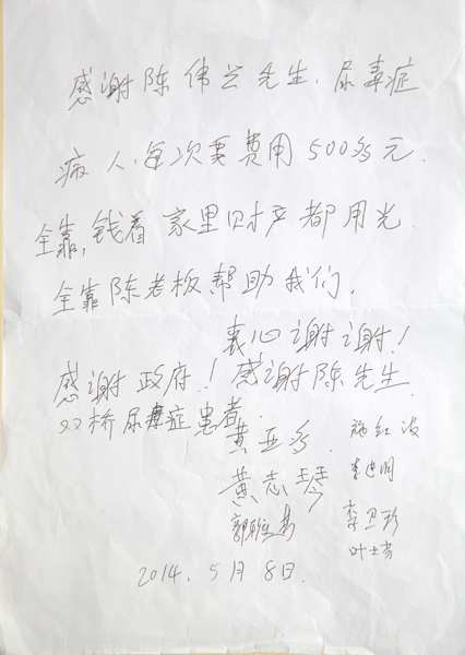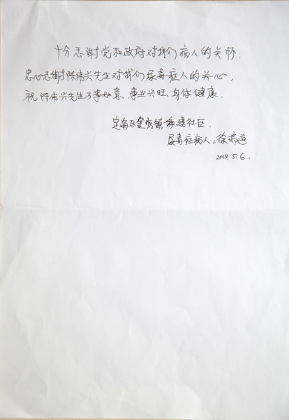 受助人对陈伟兴先生的救助纷纷表示感谢,有的写感谢信表达自己的心愿,有的在座谈中谈了自己的真心感受。虞女士谈到:自己生病后得到了社会的救助,亲身感受到社会的温暖,表示自己也要回报社会。张先生谈到:自己生病后,家庭和个人都带来了严重影响,是社会的帮助又树立起了信心,我现在的心愿就是要多活几年,养阿娘过老”。刘女士也谈到:像陈伟兴这样有爱心的企业家确实蛮好,感谢陈伟兴老板多年的救助。