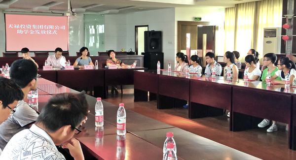 2014年8月26日下午,天禄投资集团有限公司在定海区昌国街道举行金秋助学金发放仪式,40名贫困大学生得到了每人5000元的助学款。