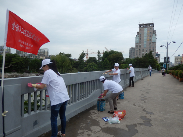 11个市在培训班上交流经验和目项竞赛,我市以美丽“洗桥”为题,组织舟山学员清洗“塘桥”护栏,获得团体优胜奖,省慈善总会领导对我市项目的点评是:“用行动感动社会,体现义工精神,富有正能量”。