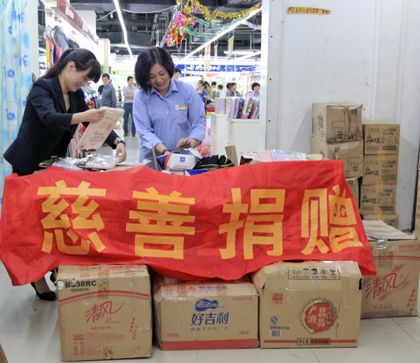 2014年9月23日下午,华之友超市定海店向定海区慈善总会捐赠价值12000余元的各类衣服、鞋子。华之友超市定海店王经理说:这些物品是换季积压在仓库的商品,放在仓库里也不能体现它的价值,而捐给慈善总会能帮助一些贫困的人这样更有意义。