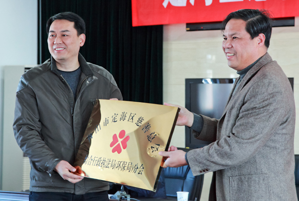 窗外阳光明媚,室内暖意浓浓,12月17日下午区慈善总会综合行政执法局(环保局)分会成立大会在区发改局六楼会议室内举行,区慈善总会会长张伟旭向综合行政执法局(环保局)分会名誉会长舒华授慈善分会牌和章,舟山市雨洁物业管理有限公司、舟山欧莱克化工有限公司两家企业现场举牌捐赠4万元善款。这是基层建立长效募集救助机制的又一个平台,走在了区属单位的前例。