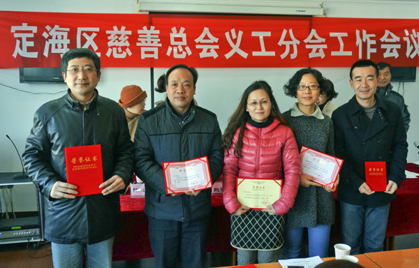 会议表彰了2014年度义工工作先进集体、先进个人、慈善工作奖和热心义工,城东街道慈善分会义工服务工作站、盐仓街道慈善分会义工服务工作站、昌国街道慈善分会义工服务工作站、环南街道慈善分会义工服务工作站、神华国华舟山发电有限责任公司、定海华之友超市、台州银行定海支行、绍兴银行舟山分行、区图书馆9家团体义工单位被评为先进集体;赵翔、陈艳、陶慧芳、杨继红、竺福阳、奚海霞、徐雅丽等20人获得先进个人称号;陈建奋、王军益、乐玲娜、何海舟等10人获慈善工作奖;李英梅、吴明阳、陶伟飞、赵洁、俞亚雪、潘思臻6人获评热心义工。