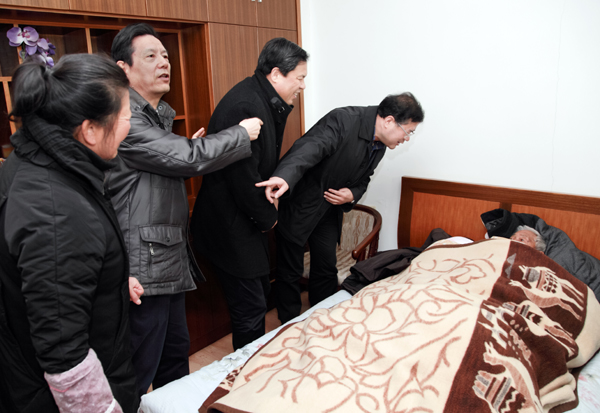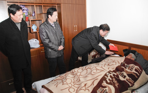 2月2日下午,李善忠副市长在市、区慈善总会负责人陪同下,到双桥街道临港社区,看望卧病在床的第五届全国人大代表、第六届省人大代表、浙江省劳动模范、有54年党龄的86岁老劳模应秋根。李副市长高度赞扬应老当年带领社员和知识青年,在海风凛冽,冰霜严寒中,平整土地,挖河排水,筑墙盖房,加固海塘,将昔日的荒滩海涂,变成了欣欣向荣的新农场。李副市长还详细询问了应老的身体、生活情况,热情地与应老聊起了家常,看了应老当年的照片和荣誉证书,称赞很光荣,值得学习,叮嘱应老的亲人要保存好,并向应老送去了5000元的慰问金。应老高兴地说:谢谢你们来看我。