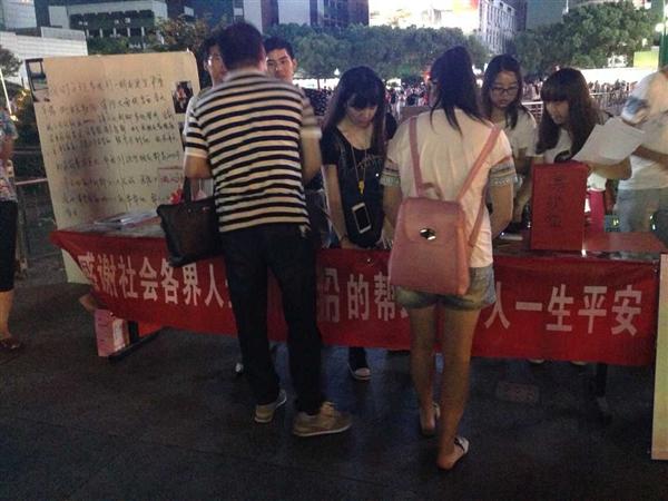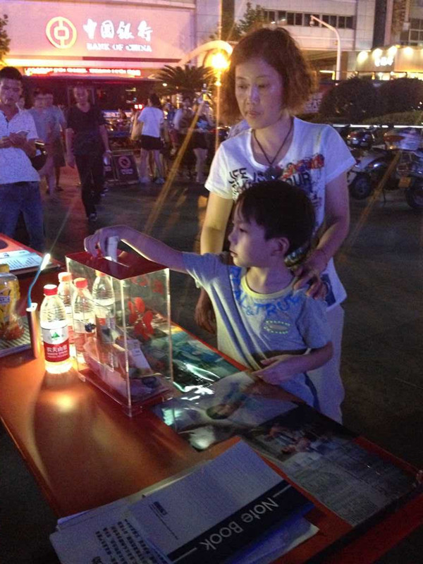 此次募捐始于何永盼的朋友和同学,区慈善总会的义工们得知这一消息后,在文化广场搭起两个简易的爱心募捐点,还提供了爱心箱和特制的展板,使募捐列入正常渠道,更加合法化和透明.。义工陈建奋、曹盛红、赵翔、徐雅丽、陈艳等和何永盼的小伙伴们一起开展了为何永盼爱心募捐活动。8月4日、5日、6日……一连好几个晚上,义工们不辞辛劳,连续作战,希望用一己之力为何永盼筹集手术费用。
