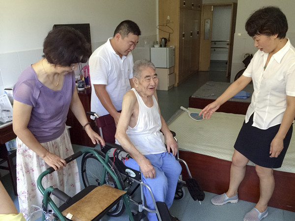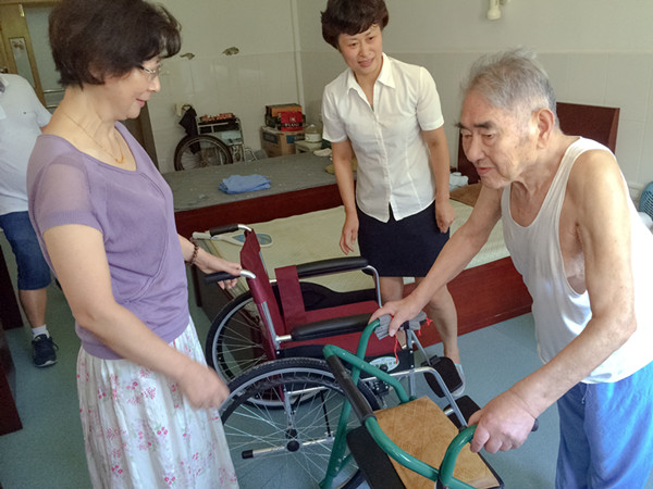 8月19日下午,区慈善总会常务副会长黄静带领工作人员,来到第二福利院看望沙老,将一辆崭新的轮椅送到沙老手中,沙老高兴地坐上新轮椅,连声说:谢谢,自己做一点事情,不要太麻烦大家。黄静代表慈善总会祝福他快乐健康长寿。