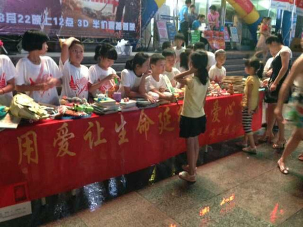 8月22日晚上,定海区慈善总会带领定海小学、檀枫小学、南海实验学校的20多位小学生,在定海文化广场举行义卖活动。孩子们拿出自己的玩具、书籍、手工制品等心爱物品参与义卖,义卖所得款项通过我会捐给马岙的一位肾病患者,助其度过难关。