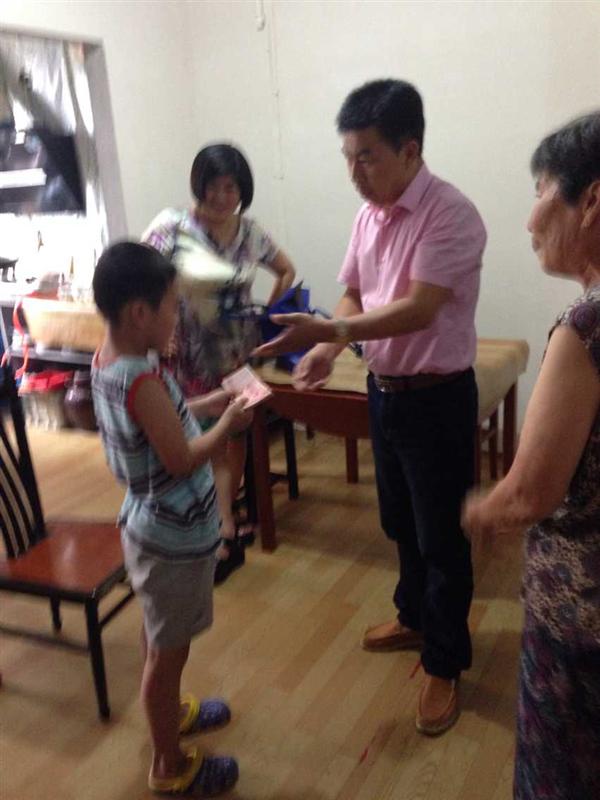 鲍同学是海滨小学四年级学生,父母离婚多年,常年和年老体弱的爷爷奶奶租住在出租房,生活困难。 接受资助的鲍同学和爷爷奶奶激动地紧握王董事长的手,连声说感谢并表示一定要好好学习,不辜负王伯伯的一片爱心和殷切期望。王董事长笑着说:“一点心意,算不了什么,希望孩子努力学习,健康成长,将来回报社会。”