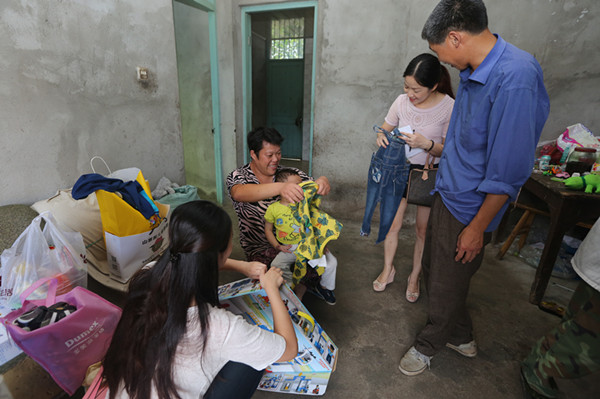 8月31日下午,定海区慈善总会常务副会长黄静和定海区新闻中心记者来到白泉镇2岁的“兔唇男孩”小文兵家中,小文兵因家庭贫困出生至今没穿过新衣服。见到陌生人的到访,小文兵显得十分警惕,躲在妈妈身后看着大家。但看到我们手中的玩具和新衣服孩子单纯的天性还是渐渐让他放下了戒备,在妈妈的帮助下,换上了已经破旧的女鞋,换上了我们为他买的新鞋和新衣。随后和哥哥玩起了玩具,虽然还不会说话,但他甜甜的笑脸和爽朗的笑声告诉我们,今天对他来说是开心的一天。