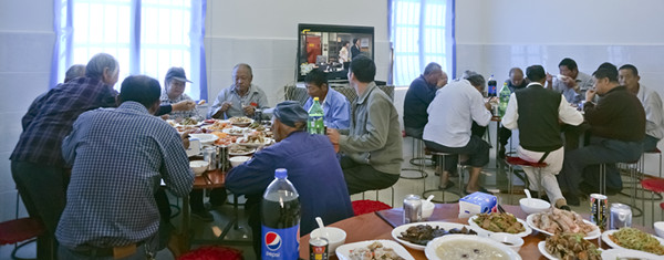 正午11点,老人们纷纷入座,共同举杯庆祝属于自己的节日,区慈善总会领导和怡东凯丽的邹总共同祝福老人们节日快乐,嘱咐他们吃好喝好。老人们互相敬酒、夹菜,在饭菜蒸腾的热气中,他们一边吃着可口的菜肴,一边兴奋地感谢政府和企业,让他们过上了好日子。