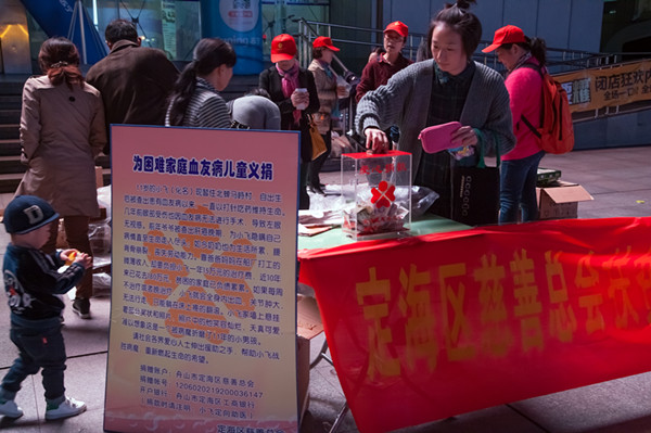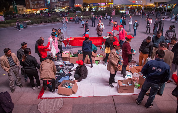 11月10日下午一下班,区慈善总会义工们就带着提前准备好的展板、横幅、义卖商品赶到文化广场摆摊,为患有血友病的外来务工居民子女小宇飞义卖义捐。这些义卖商品均由爱心市民和华之友超市免费提供,包括儿童衣物和生活用品。