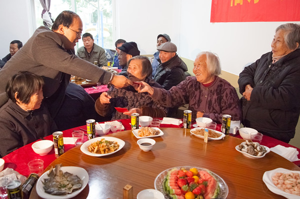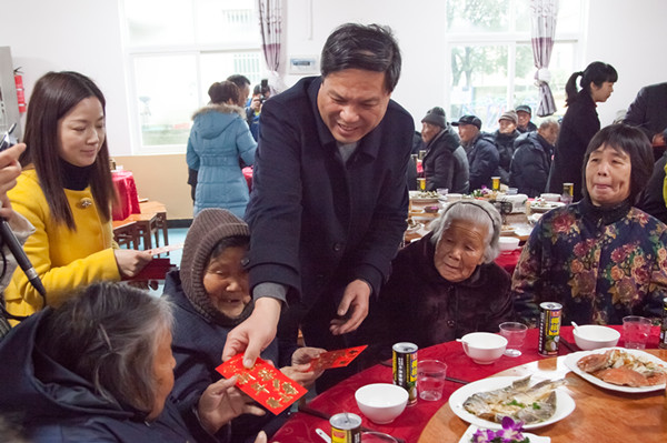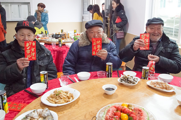 “谢谢党和政府对我们的关心,年夜饭让我们感觉很温暖。”一位84岁的老人说。“饭菜很丰盛,也很合我们的胃口,我们很高兴。”另一位老人边吃边赞叹。还有一些行动不便,卧病在床的老人,工作人员把饭菜送到了他们的房间,领导还亲自前去看望,祝福他们早日康复,新春快乐。