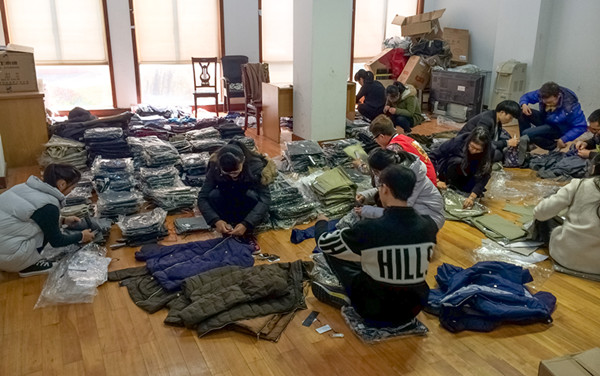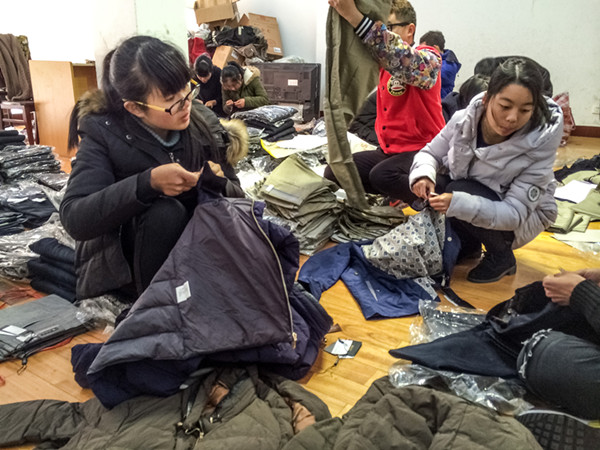 3月12日下午,区慈善总会接受了一批爱心单位捐赠的全新衣物,由于衣服量大,整理繁琐,我会工作人员人手紧张,浙江海洋学院志愿者服务队听说后立即派义工前来帮忙,11名学生义工只用了2小时将1仟余件的衣物整理,分类,打包。