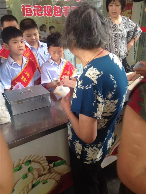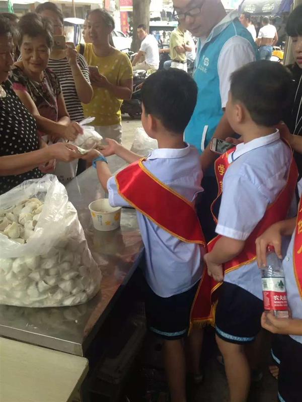 8月9日上午,恒记饺子馆“爱心美食墙”来了一批可爱的孩子,他们是定海廷佐小学二年级的学生们。在班主任老师的带领下在“爱心美食墙”上献爱心。还当起了小义工,为70周岁以上的老人们分发饺子。