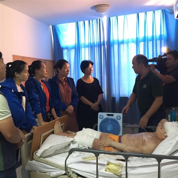 经新闻媒体报道,总会的爱心冠名基金—浙江和泓集团“海基金”想帮助这个可怜的男孩。9月13日下午,总会和“海基金”员工一起来到413医院看望小俊杰。送上了一万元的爱心款和水果篮,希望小俊杰在爱心的包围中树立信心,克服困难,早日康复,重回校园。