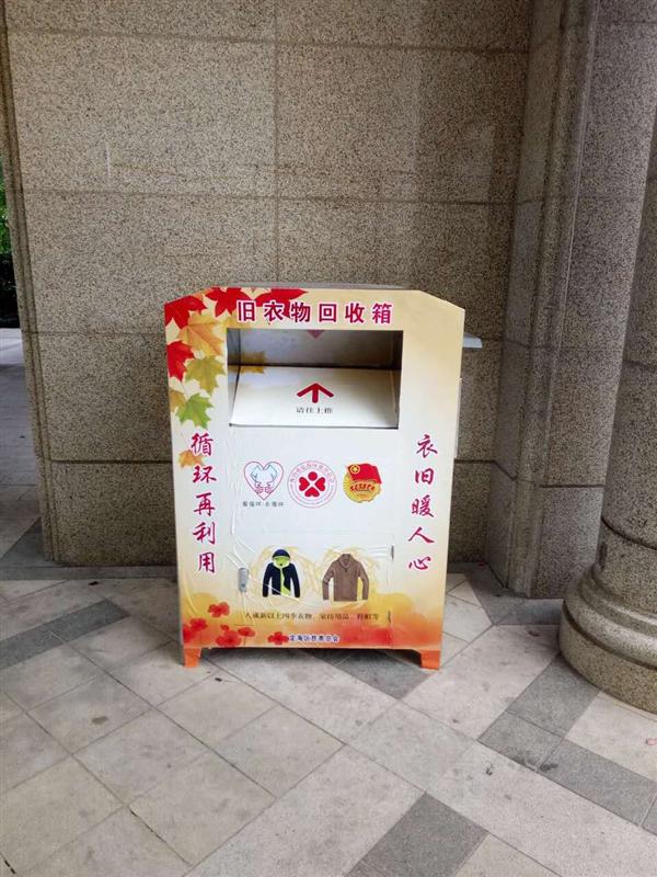 近日,在定海玉兰花园小区新增了一只爱心捐衣箱,这是定海区慈善总会和团区委开展的“爱循环.衣循环”项目第八只爱心捐衣箱。