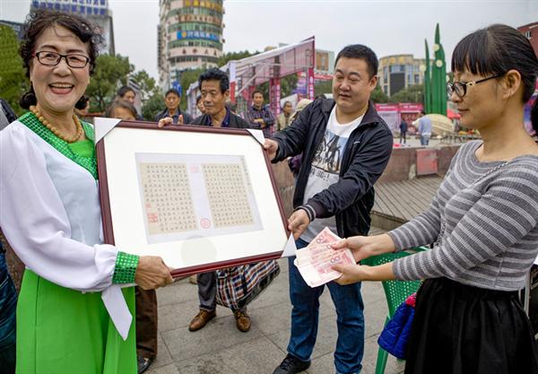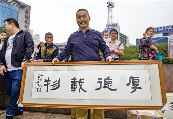 现场进行了书法作品义拍,观众们热情高涨,一次比一次喊价高,共拍出6幅书法作品,筹得善款5400元。