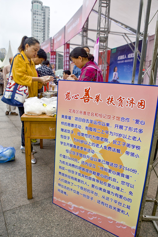 在我们的舞台周围还设有定海区司法局慈善法咨询,区志愿者协会义工为民服务、爱尔光明眼科医院义诊献爱心,恒记饺子馆爱心美食墙献爱心活动,慈善总会义工慈善义卖和“海基金”爱心义卖等。