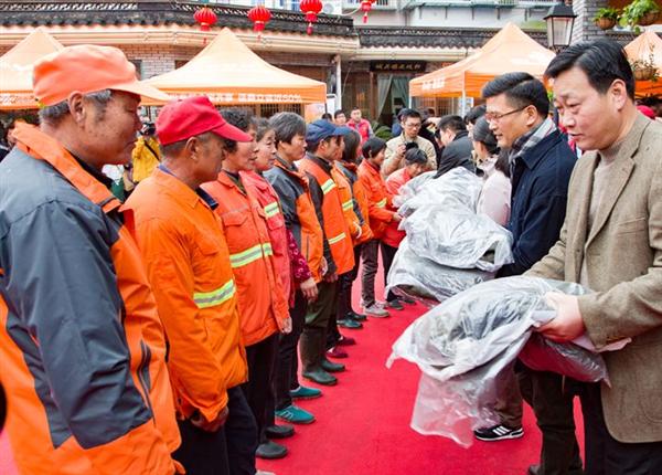 开业当天,慈游埠向环卫工人赠送冬衣100件,这也是我们定海区慈善总会连续三年实施的“冬日暖衣”项目。