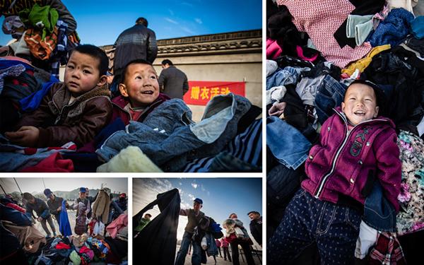慈善赠衣快乐 作者:景汉峰 盐仓慈善拥军车队,将区慈善总会捐赠的衣服送到