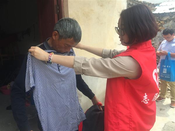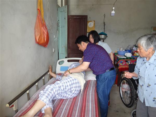 在全国第27次“助残日”来临之际,小沙街道慈善分会联合街道团工委、街道残联部分义工开展“走近你”——善立方助残活动。该活动作为街道慈善分会2017年慈善助残品牌项目活动之一,旨在鼓励更多的残疾朋友走出家门,融入社区,进一步巩固社区居民和残疾人士之间的关系,提高残疾人的幸福感和满意度,并在全街道范围内倡导扶残助残的良好风尚。今天上午,街道慈善分会邀请市福利院叶老师为街道内中风瘫痪残疾人王先生及其家人做基础护理及康复培训,通过一小时半面对面培训,让王先生及其家人了解到康复误区及正确方式,叶老师表示,只要通过正确的护理及康复训练,王先生能基本恢复自理能力,这让中风三年没出过家门的王先生重拾信心,希望通过坚持不懈的锻炼能够早日走出小小庭院。在街道志愿者的共同参与下,分会为辖区内十余名残疾人送上了衣物,并为其打扫庭院,唠家常。东风社区傅先生作为其中一名残疾低保户,无子无女,生活不便。在志愿者的共同陪伴下,让这名残疾人感叹:正是党和政府的陪伴,才让我们过上了好日子。残疾人作为弱势群体,生活在各个角落,他们或自卑、或失去劳动能力、抑或对生活失去了希望,只有我们真心陪伴,才能让他们重新生活在阳光下,慈善分会“走近你”助残品牌活动将继续开展活动,誓将“真善美”无限扩散出去。