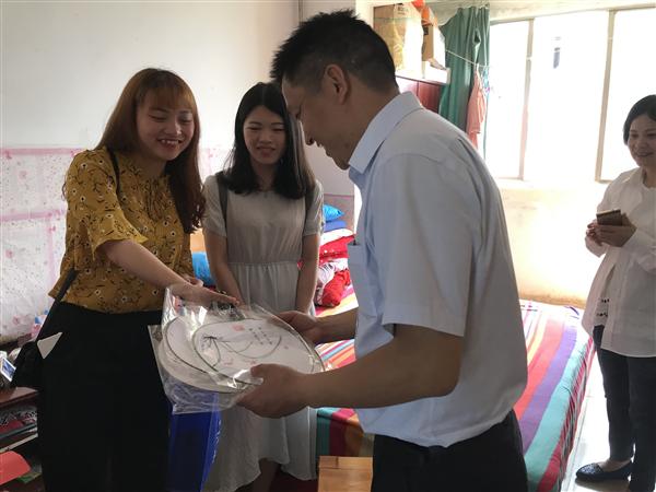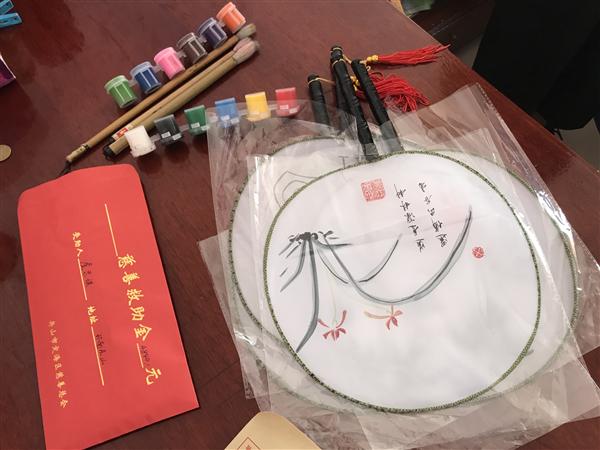 总会工作人员和东科学院大学生将4840元义卖款送到小朋友父亲手中,大学生还将他们精心挑选的画扇送给小朋友留作纪念,祝小朋友六一节快乐。