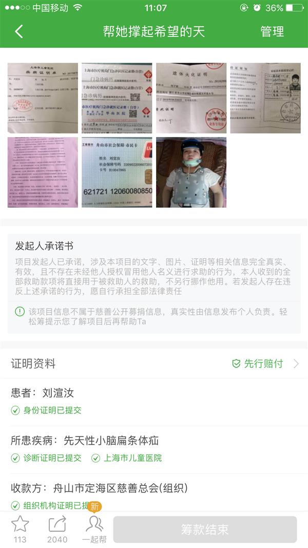 近日,总会发起了一起网络募捐,为定海城东小学刘宣汝筹集手术费。小渲汝身患多种疾病,父亲早逝,母亲智力残疾,生活不能自理,从小由爷爷奶奶抚养长大的小宣汝善良懂事,品学兼优。因家庭贫困默默忍受头疼的折磨为期两年,终于在今年的四月份剧痛难忍到医院检查,不幸被确诊为小脑扁桃体下疝、颅底凹陷症、C5T2脊髓空洞等严重疾病。这个突如其来的的打击,对于小渲汝原本贫困的家庭无疑是雪上加霜,爷爷奶奶东拼西凑,小渲汝已成功接受了上海交通大学附属医院的第一次脑部手术,花费了6万元,接下来还需要进行第二次手术,医疗费用高达22万元,这对于小渲汝的家庭来说无疑是天文数字。