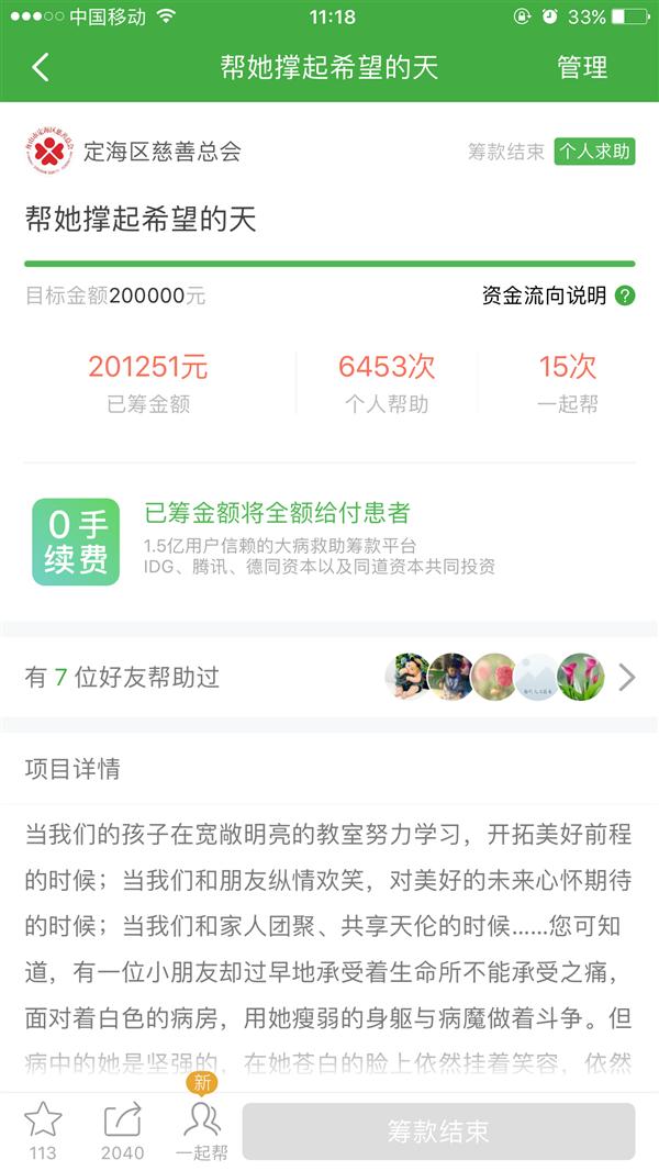 病魔无情,人有情,我们决不能看着一朵生命之花还未绽放就无奈的凋零,在接到小宣汝老师的求助后,总会立即发起了网络募捐,为其筹款。未曾想社会爱心人士的慈心善举和慷慨解囊让我们的众筹12小时就达到了20万元的目标。小渲汝的第二次手术费有了着落。总会将根据网络众筹协议用好这笔慈善款,让小渲汝真正得到救治。