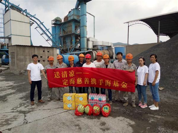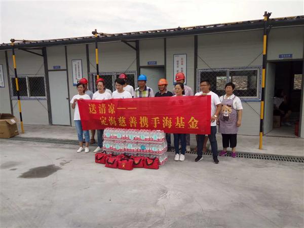 八月初,定海区慈善总会携手和泓“海基金”举行了一次送清凉活动。有这样一群人,无论刮风下雨还是严寒酷暑,他们就像一颗螺丝钉一样,牢牢的钉在自己的工作岗位上。8月的定海城正是最热的时候,总会和海基金领导及工作人员们,带着夏日清凉包和矿泉水为坚守在一线的工作人员们送去一丝清凉,分别到城东垃圾回收站、城西交警支队、定海慈善拥军车队等6处,把清凉包送到环卫工人、交警、拥军车队员手上。近日,海基金的“清凉风”又再次吹到了马岙在建的环保造纸厂和白泉昕达路面有限公司,同样为他们送去清凉包、矿泉水、西瓜等解暑用品。
