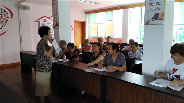 9月1日上午,定海区关工委关爱团副团长“爱心奶奶”郭玲娣,在共建单位环南街道卫海社区给老年学员上课,配合教材《实用保健养生操》第一章——中国传统养生的理论“天人合一”阴阳五行学说、脏腑学说和经络学论等,要求老年学员加强自我保健,积极参加全民运动,做个健康快乐的老人。