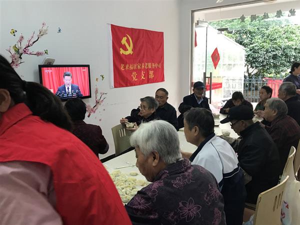 10月19日,城东街道慈善分会义工站组织老年人在居家养老服务中心举办了一场“喜迎十九大 圆梦夕阳红”活动。