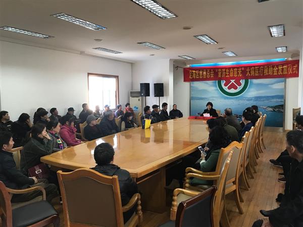 11月27日下午,我们举行了“普济生命慈光”大病医疗救助金发放仪式。2012年开始普陀山佛教协会和市慈善总会合作设立“普济生命慈光”大病医疗救助项目,目的是为了帮助身患重症的我市贫困群众在政府医疗救助后仍有较大困难者能够得到及时治疗,该项目已经在我区连续开展了5年,共有259名贫困群众得到帮助,救助金额155.5万元。今年经11个镇(街道)慈善分会调查核实,区慈善总会审查把关,市慈善总会审核确定,加大力度安排了50万元资金,又有77位困难群众接受“普济生命慈光”项目救助。