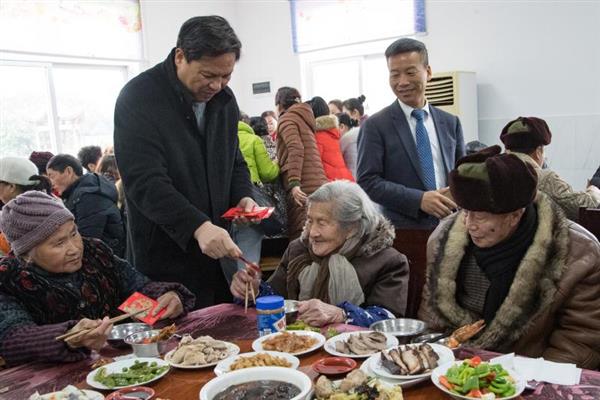 1月31日中午,总会与怡东凯丽大酒店组织的“慈善年饭”在白泉镇敬老院温暖开席,让老人们感受到了来自社会的温暖和关爱。当天中午11点左右,11桌“慈善年饭”同时开席,一桌桌丰盛的菜肴香味诱人,70多位老人吃得津津有味。