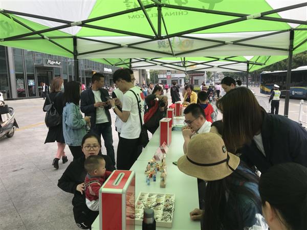 随后,定海凯虹广场还举行了爱心义卖市集活动,定海部分企业和商家将文创产品、优惠券、手机、衣服、鞋子等进行爱心义卖,吸引了不少市民积极参与。