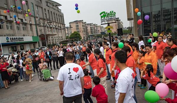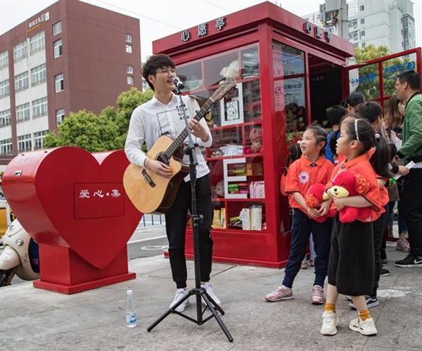 “我来自偶然,像一颗尘土,有谁看出我的脆弱………”当天上午10时30分,悠扬的旋律在定海凯虹广场响起,一名女士拉着小提琴拉开了表演的序幕。随后,百余名表演者从四周汇集,通过《感恩的心》手语快闪表演,向大家宣扬“感恩社会、无私奉献”的理念,该表演也引出了当天的主角全市第二座“心愿亭”。