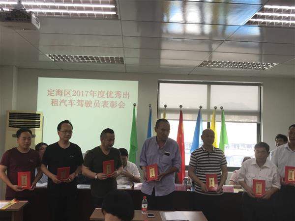 517日下午,定海区出租汽车行业协会对2017年度热心公益的慈善拥军车队队长吴发喜、见义勇为慈善拥军车队副队韩军鹏、拾金不昧的沈平宽等14位优秀出租车驾驶员进行表彰。