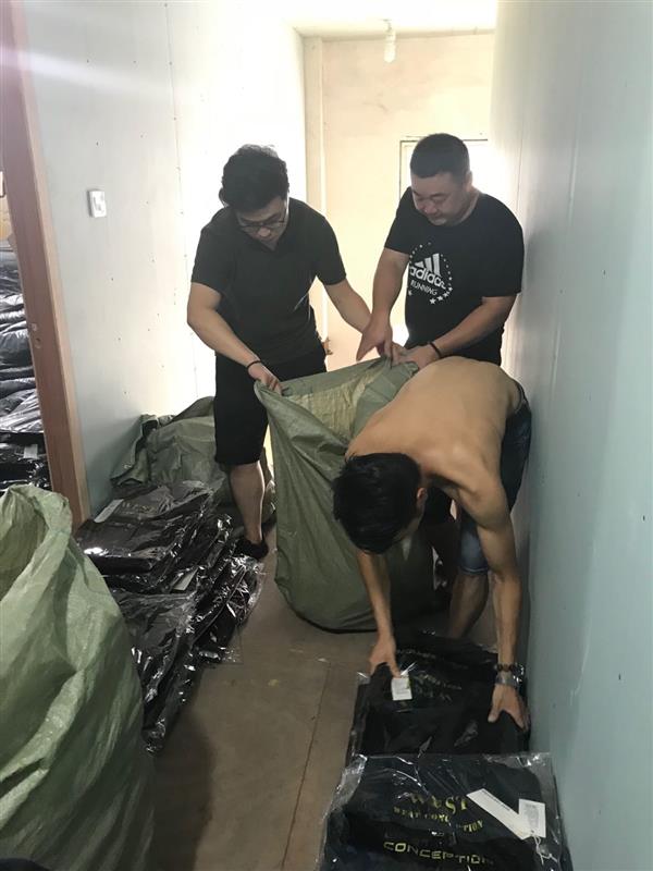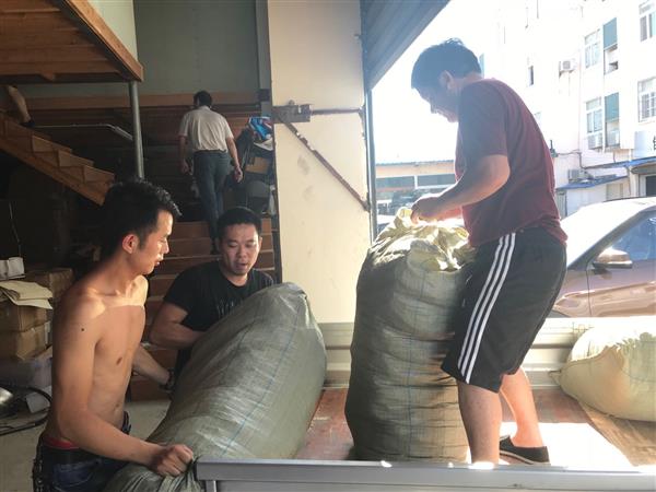 下午,总会领导及工作人员应约来到浩马商贸有限公司仓库,大伙开始分类打包,羊毛衫、西装、大衣、夹克、羽绒服、棉衣、牛仔裤、休闲裤等,各种各样的服装琳琅满目。