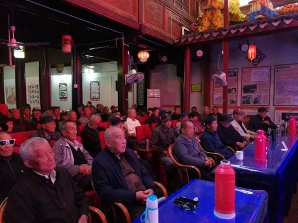 演出中场休息间隙,只见洪海兵走进馆内。他介绍道,从租借装修场地、搭设表演舞台,再到配备灯光音响等电子设备,他独自已投入了两三百万元。“前几年生意还比较好做,这几年行业竞争激烈,利润不如以前,所以养曲艺馆的压力有点大。”洪海兵说,但看到老人们这么喜欢听曲艺,自己觉得总要坚持下去。“苏州有评弹、天津有快板、东北有二人转……翁洲走书是舟山这座历史文化名城独具代表性的传统曲艺,我们得好好保护和传承。”目前,他打算通过网络直播、微信微课堂等方式,让非遗文化与文化养老相结合,也希望更多爱心人士加入到传统文化的保护和文化养老事业。