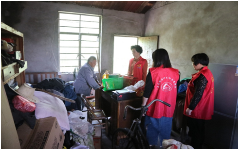 重阳节到来前夕,马岙街道慈善分会和街道残联的志愿者们来到残疾老人罗兴邦和空巢老人付对娣家里,帮老人打扫卫生,送去大米、油、牛奶等慰问品,并送上节日的祝福。