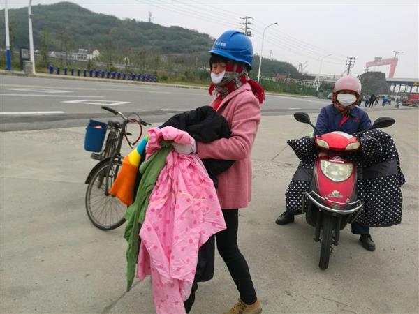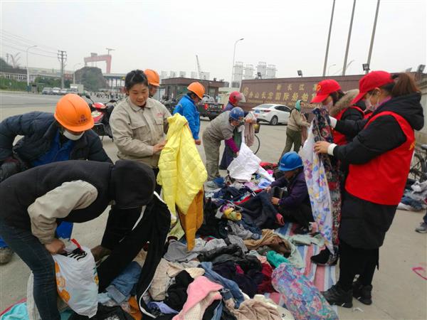 12月14日上午11点,定海区慈善拥军车队组织队员们驾车来到舟山长宏国际船舶修造有限公司开展“爱循环.衣循环”赠衣活动,设摊将800多件衣服送给这里的新居民。“天气冷了,新居民都需要棉衣,因为早来他们要上班,中午下班他们取棉衣,不会耽误工作。”慈善拥军车队队长吴发喜说。在现场,很多下班的工人,马上聚集在摊子前挑选寒衣。“我就准备给老公去买件羊毛衫,没想到他们送来了。”河南籍新居民赵倩倩说,自己就挑选了十多件,有丈夫的,也有孩子的。“省了一大笔钱,这些衣服有的吊牌还在,都是新衣服,穿着很舒服。”