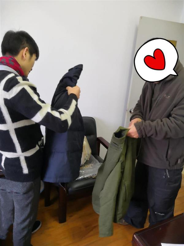 总会工作人员了解了该小伙子的情况后从捐赠的新衣物里,给他准备了1套全新的棉衣棉裤。14日上午,该小伙子来总会领取冬衣冬裤,并连声对我们表示了感谢。