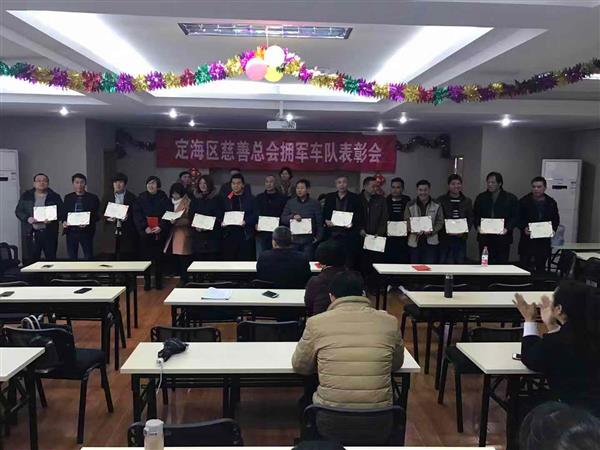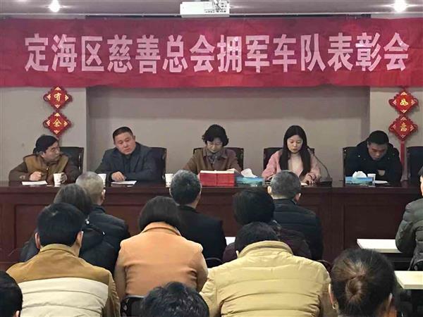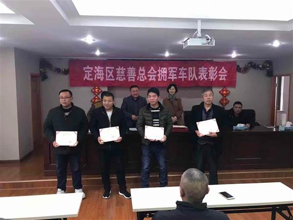 3月 1日下午,定海区慈善总会对2018年度慈善拥军车队表现突出的4名优秀义工、16名文明出租车驾驶员进行表彰。去年,慈善拥军车队开展拥军活动,共服务驻舟部队官兵4000多人次,和舟山市新四军理事研究会结对,开展“爱循环、衣循环”活动7次,把2万多件慈善捐衣送到新居民朋友手中,每月到盐仓敬老院包饺子、擀面条,不定时到盐仓敬老院陪老人聊天、打扫卫生,开展护河、护绿85次,有25人次队员拾金不昧,参与创建全国文明城市活动共1300多人次。