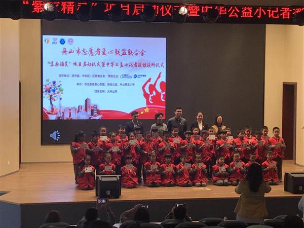 4月29日下午,舟山市志愿者爱心联盟联合会“紫衣精灵”项目启动仪式暨中华公益小记者举行授旗授牌仪式。舟山团市委权益部、舟山市妇联权益部、定海区慈善总会、大舟网络科技股份有限公司、卡特维拉舟山分公司、太平洋保险公司舟山分公司的领导和嘉宾参加了本次启动仪式。“紫衣精灵”项目是由爱心联盟和大舟山网、拇指公益共同发起的公益项目,“紫衣精灵”由小志愿者组成,所有小志愿者来自舟山不同学校的中小学生,主要服务于:环保、义卖、社区服务、文艺汇演等公益活动。此次“紫衣精灵”启动仪式旨在鼓励更多的人参与公益志愿活动,用自己的特长服务社会!