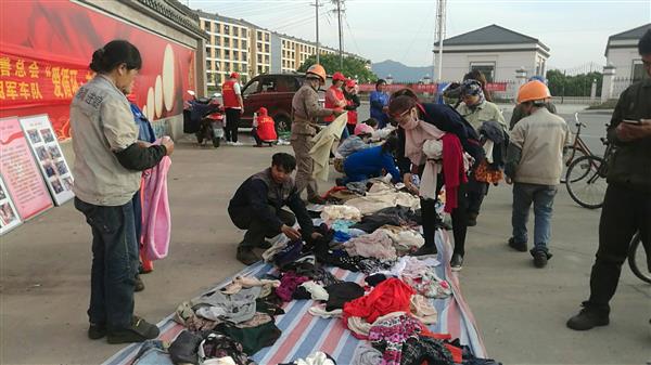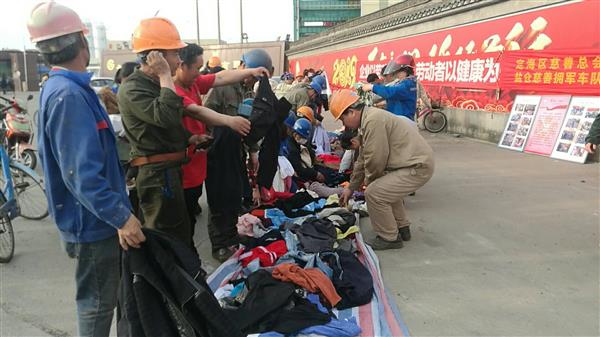 5月12日下午,定海区慈善拥军车队开展新一轮“爱循环·衣循环”活动,初夏来临,车队队员们特地将市民捐赠的500多件夏季旧衣服送到舟山长宏国际船舶修造有限公司,让这里的外来务工者们能挑选到合适“爱心夏衣”,度过夏天。