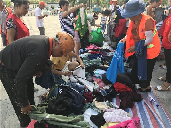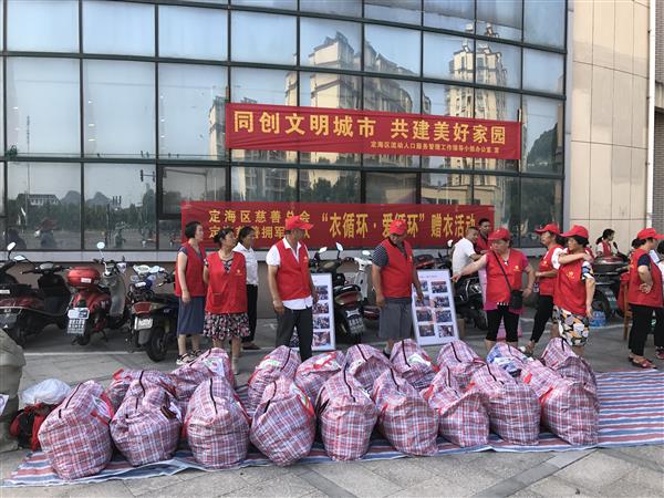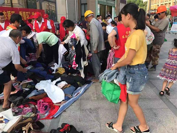 7月26日下午,定海区慈善总会在盐仓举行“衣循环·爱循环”赠衣爱心活动,2000多件衣服,100多双鞋子被新居民挑拣一空。