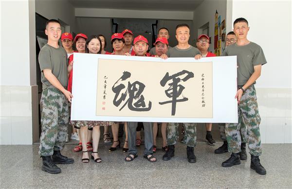 爱心记者王亚中还以定海区慈善总会的名义为官兵们送去了一份独特的“八一”礼物——亲手书写的字画“军魂”, 表达了对官兵的节日祝福和深深敬意。