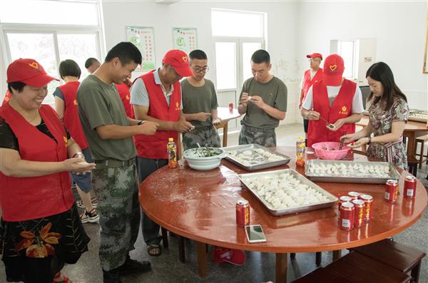 7月31日上午,定海慈善拥军车队部分队员及家属来到驻舟陆军某部,与官兵们一起包饺子、擀面条,共叙军民鱼水深情,共同迎接建军92周年的到来。
